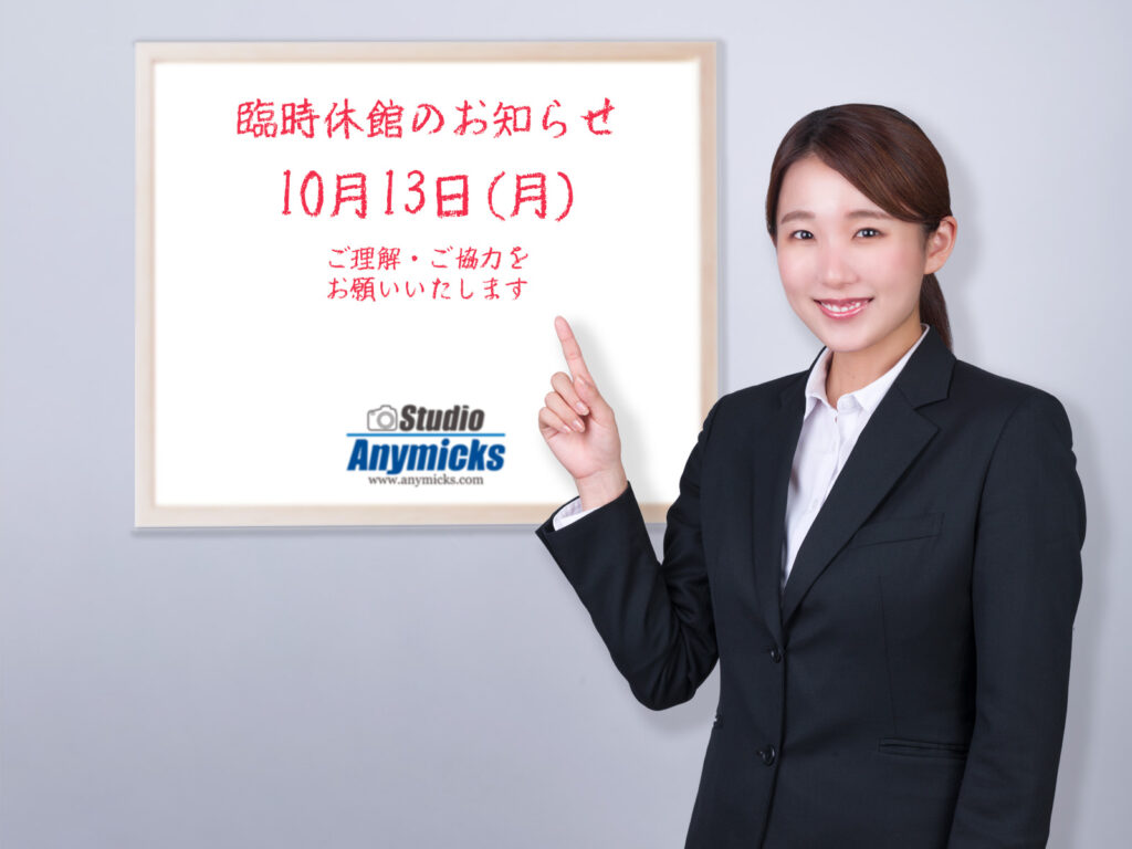 Studio Anymicks(エニィミックス) > お知らせ > 10月13日(月) 臨時休館のお知らせ